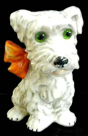 Although scotties were popular prior to the '20s, it was during these years that they became increasingly visible in the media, in figurines and toys. Along with the fox terrier, another '20s favorite, their strong geometrical conformation appealed stylistically to the Art Deco generation.