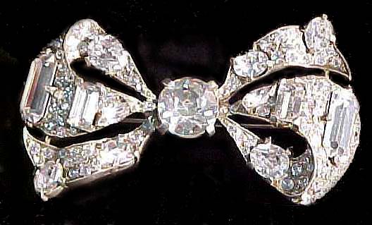 Art Deco period jewelry from the 20s and 30s included strings of amber beads and lots of pieces featuring marcasites, chrysoprase (a jade colored stone) and onyx. Long, dangling rectangular earrings complemented shorter hair styles and are still popular today. Costume jewelry became fashionable in this period, and the 'diamond' dress clips of rhinestones produced in this period look equally chic with today's clothes.