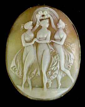 Cameos of shell (mostly from Italy) hardstone or coral have remained universally popular for hundreds of years. There is a huge variety of styles and prices available in most antique malls and shops, everywhere from 1920s pins set in gold fill for around $30.00 up to beautifully mounted Victorian necklace and earring sets selling for thousands. Cameos of scenes, rather than the traditional female profile, are particularly interesting. Persian turquoise, garnets, carnelian, and coral appear in many of the Victorian pieces; lockets enclosing pictures or locks of hair are great gift choices for a sentimental lady. For the slightly near-sighted woman who declines to wear glasses, consider giving her a lorgnette or folding glasses on a gold chain—attractive, yet practical.