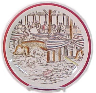 Several artists created stock collector plate lines which were nationwide. The 'Bits' series featured seven plates with historic scenes from six different US regions; most also had a chop plate (such as the Old South levee plate). California Missions, Race Horses, Cocktail Hour Plates, Music Masters and a Christmas series were other popular lines.