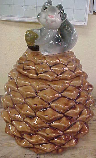 Vintage Metlox Squirrel on PineCone Cookie Jar. Space #46.