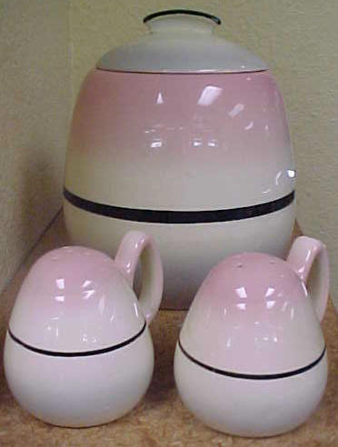 Hull Pottery Pink Salt and Pepper and Cookie Jar Set. Space