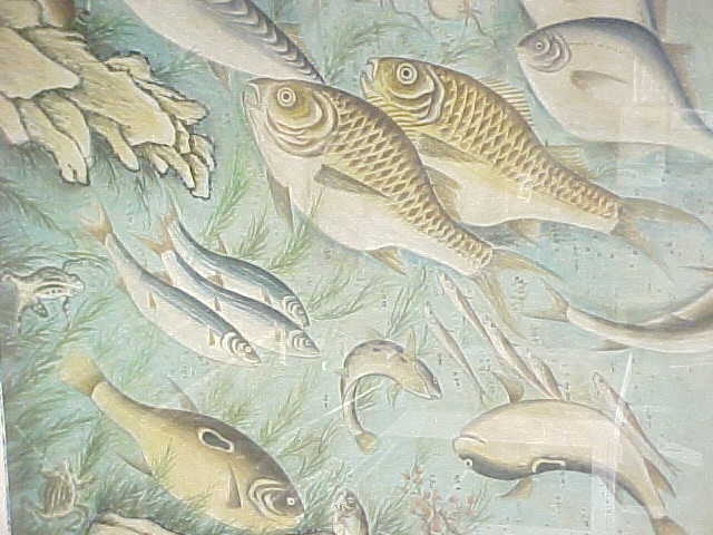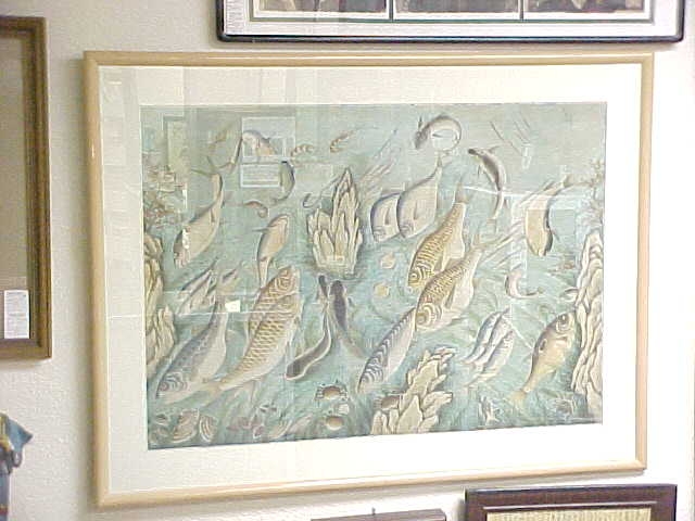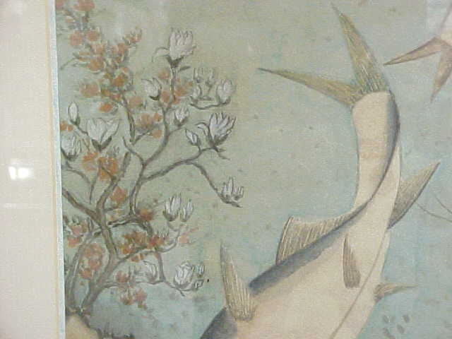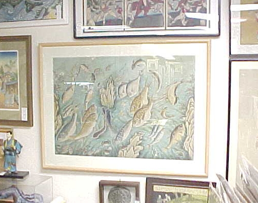 Very Large Framed Antique Korean Original Fish Art. Space #92.