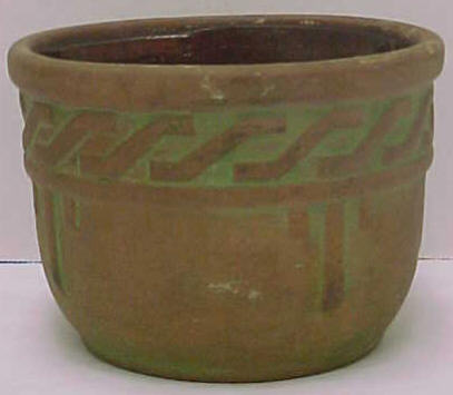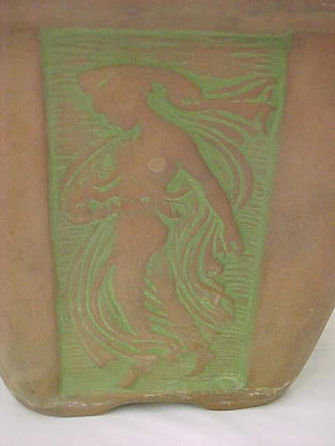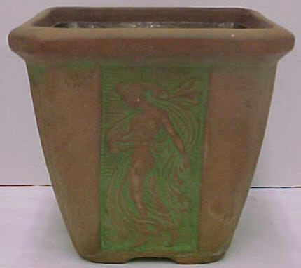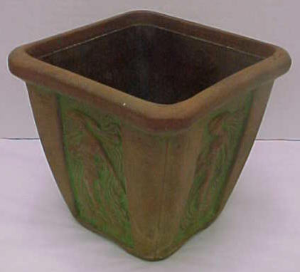 However, the focus of Peters and Reed changed radically when Frank took control of the company in 1906. His experience was with art pottery, not utilitarian ware such as flower pots. So it goes without saying that he began to reshape the production and marketing around more art pottery items, and began to push out the more functional production lines. His tinkering eventually let to the creation of the Moss Aztec line, a red clay pottery with green tints that had a rustic feel. Although Peters and Reed were skeptical about the line themselves, Frank didn’t waver and even priced the line beyond what Peters and Reed thought the market could bear. Frank, as he would do a number of times in his lifetime, proved his detractors dead wrong, and the Moss Aztec line became so popular in so short a time that prices for the line were raised after only a year. “Sanford’s Guide to Peters and Reed” says, with the 20/20 of hindsight, that “the popularity of Moss Aztec insured the success of the Peters and Reed Company.” Although, it might be argued that this statement places the cart before the horse. It was really Frank Ferrel who secured the future of Peters and Reed.