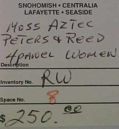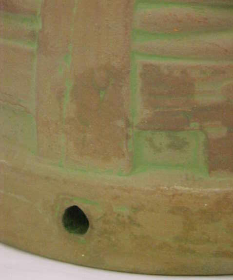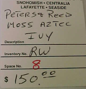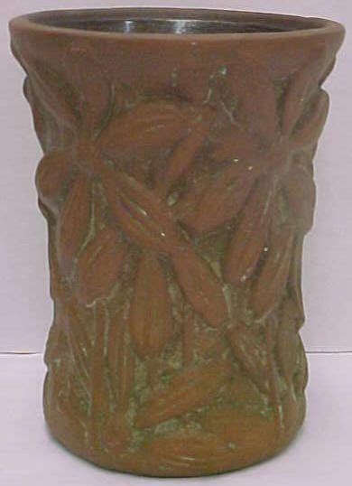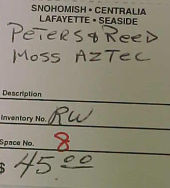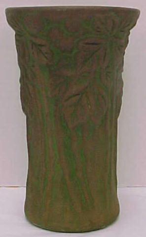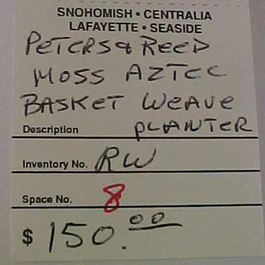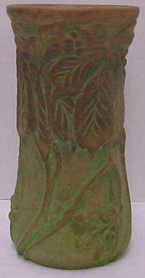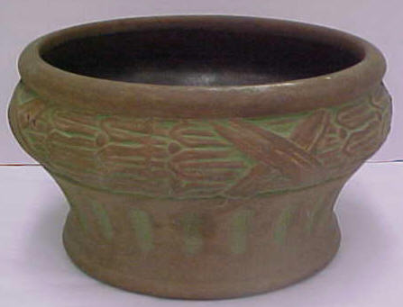 Interesting to note about Moss Aztec in that the shapes and stylization used in the line are in many respects the same as what Frank attempted to do in his pinecone line for Roseville. Many Roseville collectors are probably unaware that their pinecone pottery collections, even though not created until 1935, really had their origins 30 years earlier when Frank was experimenting at Peters and Reed. This is significant because while a Pinecone piece may fetch as much as a thousand dollars these days, there are Moss Aztec items on the market for a fifth that price. The reason for this is simple: Even though Moss Aztec was produced earlier and is harder to find, people on the whole find the Roseville Pinecone design more appealing. And, in the end, that’s what really determines collectable values. However, for pinecone pottery collectors interested in the history of their collections, it would seem necessary that they delve into Peters and Reed. And for investors interested in picking up some enormously undervalued pottery as it goes through the cycle that all collectables endure as styles and fashions change, Peters and Reed would also be worth a look. -Tim Regan