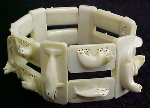 Vintage Walrus Ivory bracelet decorated with animals $165 |