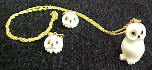 Vintage Walrus Ivory 3 piece owl set with earrings and pendant necklace $109 |